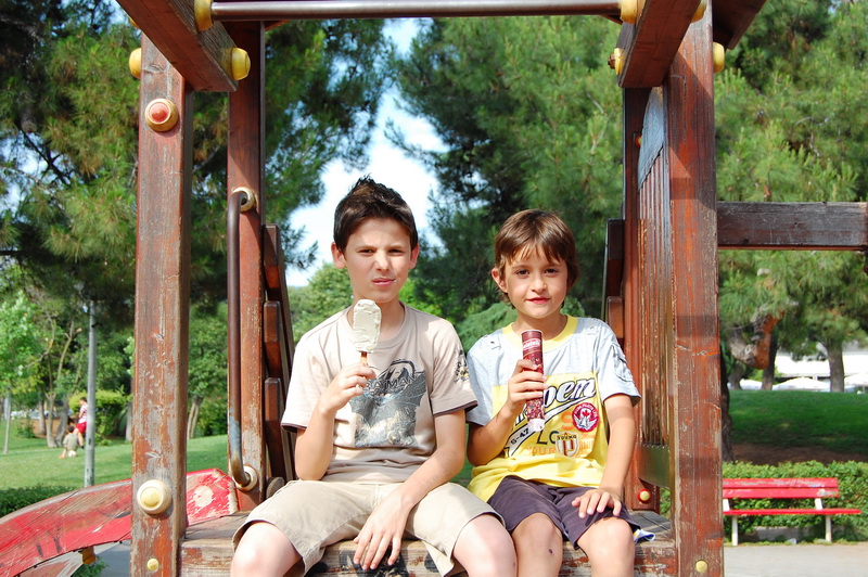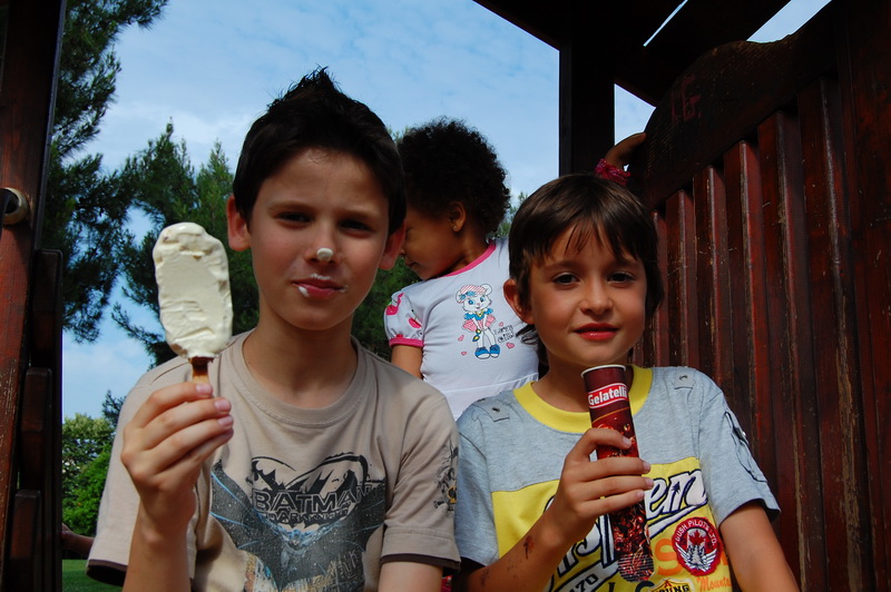 Today was the last day of the school year 2010-2011. We couldn't resist a visit in the park again, to celebrate the start of the summer holidays. The ice cream treat has long become a tradition and kids always go crazy with it!